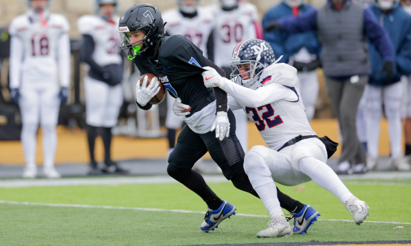 EMPORIA – In a defensive slugfest on a bitterly cold day, the Manhattan Indians were as stiff as the northwest wind in Emporia. Manhattan (11-2) pitch a shutout and captured the school’s fourth state title, defeating the Olathe Northwest Ravens 27-0 at Welch Stadium on Saturday.